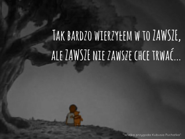 Wśród ulubionych piosenek Ewy znajdują się kubusiowe mruczanki. Jest ich minimum kilkanaście (łącznie z 4 filmów z Kubusiem Puchatkiem), tak więc przez sporą część dnia wsłuchujemy się w głos Jana Kociniaka w roli Kubusia. To niesamowite, jak czyjś głos może zlać się z bajkową postacią. Jak świetnym trzeba być aktorem, żeby zagrać samym tylko głosem tyle emocji…! Tak, żeby głos przestał już brzmieć w uszach widza jak głos mężczyzny, a stał się po prostu głosem Puchatka.
